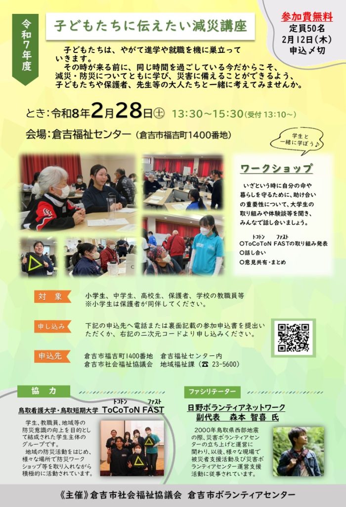 減災を考えるきっかけに、「子どもたちに伝えたい減災講座」を開催します